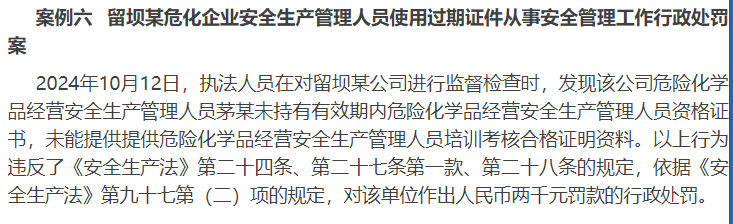 就比如漢中市發(fā)布的《以案警示,安全生產(chǎn)領(lǐng)域8起違法典型案例曝光》里面就講到這個案例